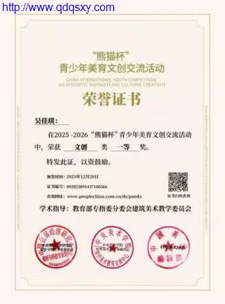 “熊猫杯”青少年美育文创交流活动是一项国家级青少年美育类综合文化交流赛事,由中国外文局等权威机构指导或主办,旨在通过美育与文创结合的形式,提升青少年的文化素养、科学精神和全球视野。能在这样高规格的赛事中脱颖而出,充分展示了我院艺术设计专业的实力和水平。