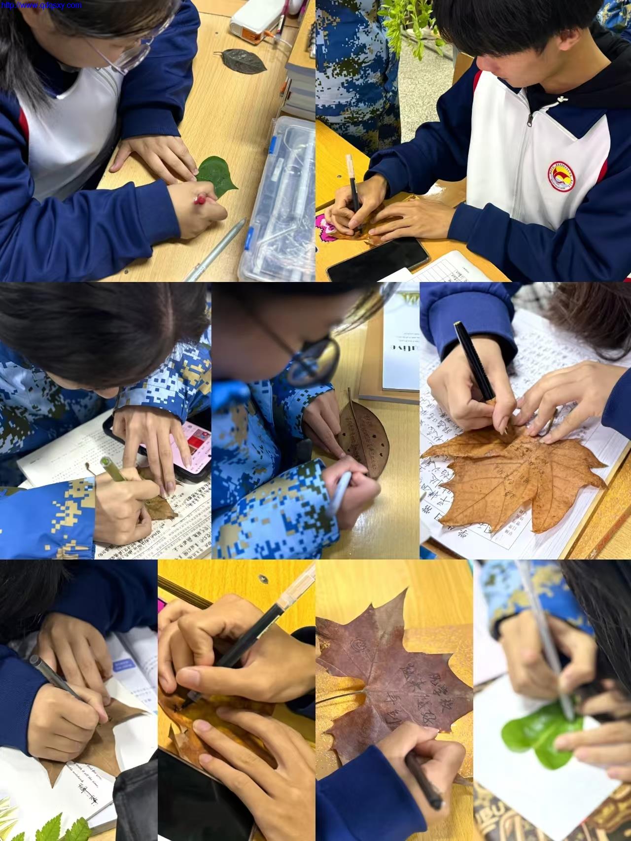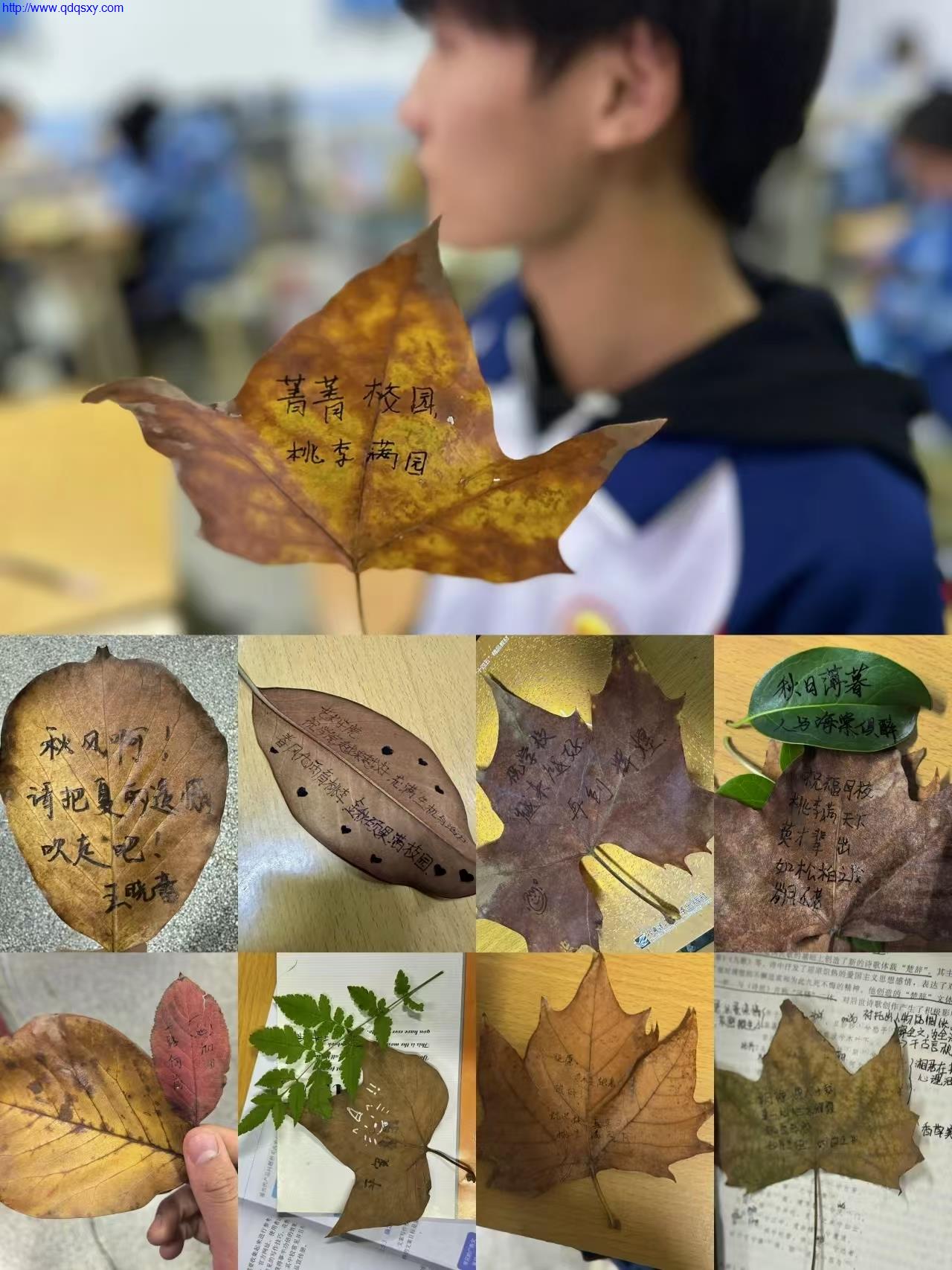 “金箔满地谁人留,不负美景不负秋”,金黄色的落叶散落在地上,秋天的身影在校园各个角落翩翩起舞。同学们收集了散落在校园各处的树叶,并在树叶上写下心中美好的祝愿,使校园的秋天变得更加生动有趣。