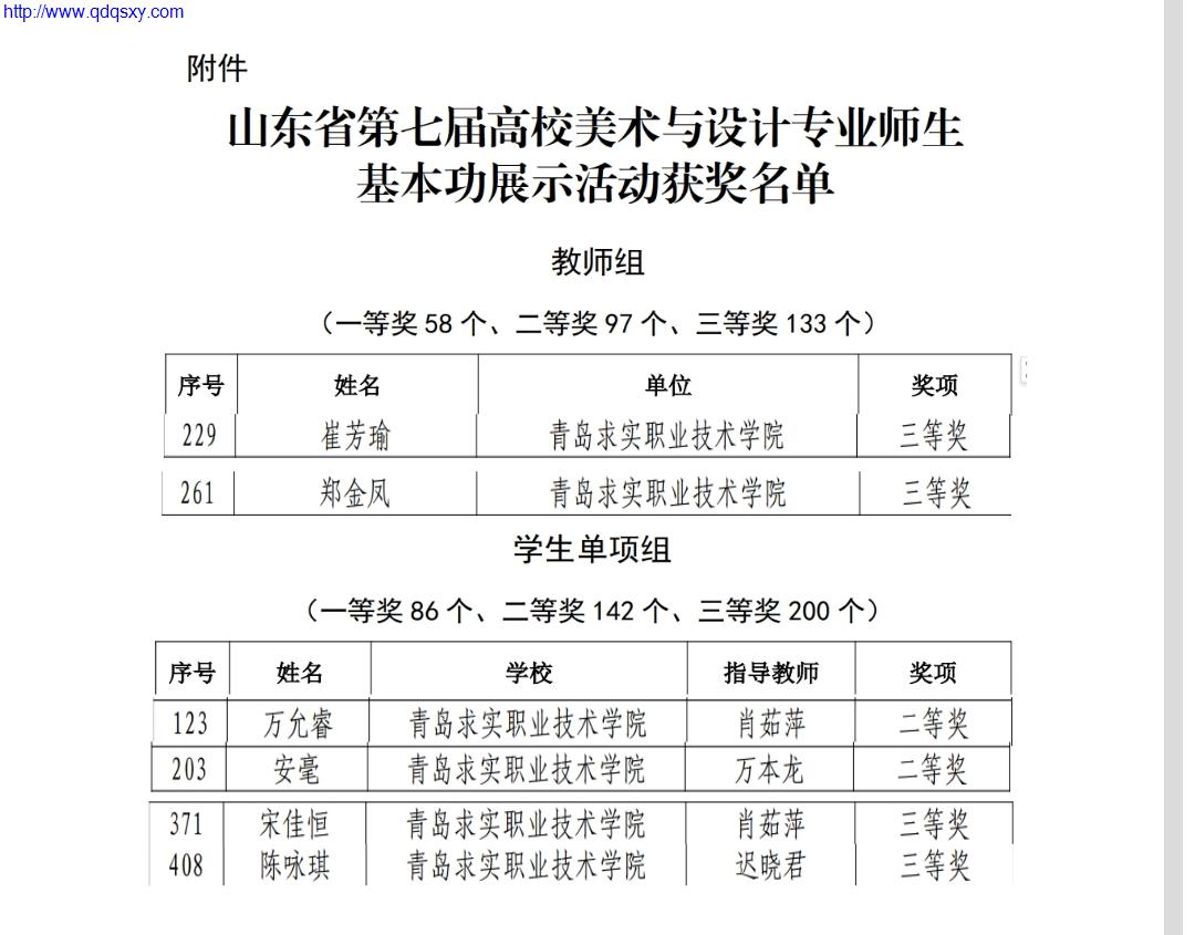 近日,由山东省教育厅主办的“第七届山东省高校师生美术与设计专业师生基本功大赛”10月24日在山东工艺美术学院举行。青岛求实职业技术学院艺术学院选派的多名师生在比赛中发挥出色,凭借扎实的专业功底和独特的艺术创意,从众多参赛选手中脱颖而出,共斩获教师组三等奖2项,学生单项组二等奖2项、三等奖2项,优秀指导教师二等奖2项的优异成绩,全面展现了我校艺术学院在美育教育与专业人才培养方面的雄厚实力。