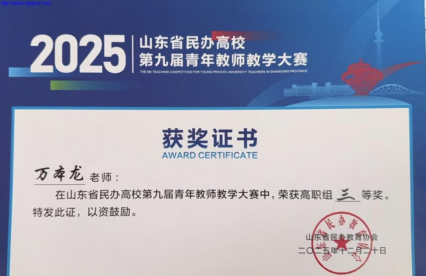 近日山东省民办高校第九届青年教师教学大赛在青岛黄海学院成功举办,我校艺术学院艺术设计专业教师万本龙凭借出色的教学设计和精彩的现场讲授在此次教学大赛中荣获三等奖。