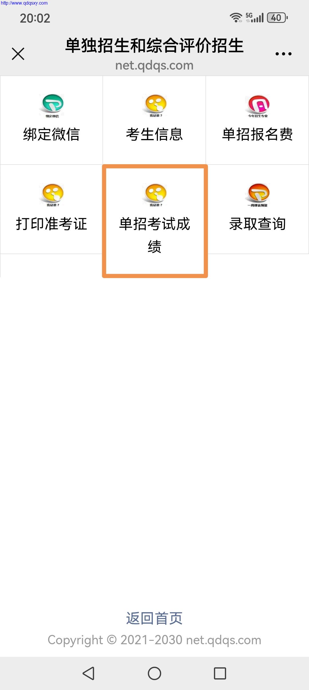 如上图所示,打开“单招考试成绩”就可以查询到成绩。