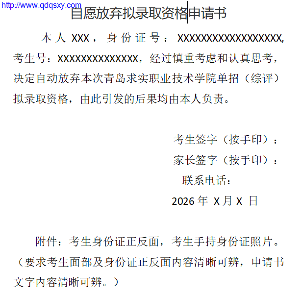 如有愿放弃拟录取资格,请按以下格式提交自愿放弃拟录取资格申请书