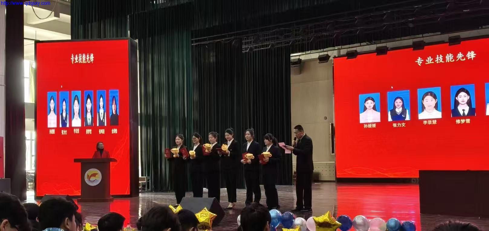 大会现场为获得“优秀学生奖”“优秀学生干部奖”“专业技能先锋奖”等七大奖项师生颁发了证书。