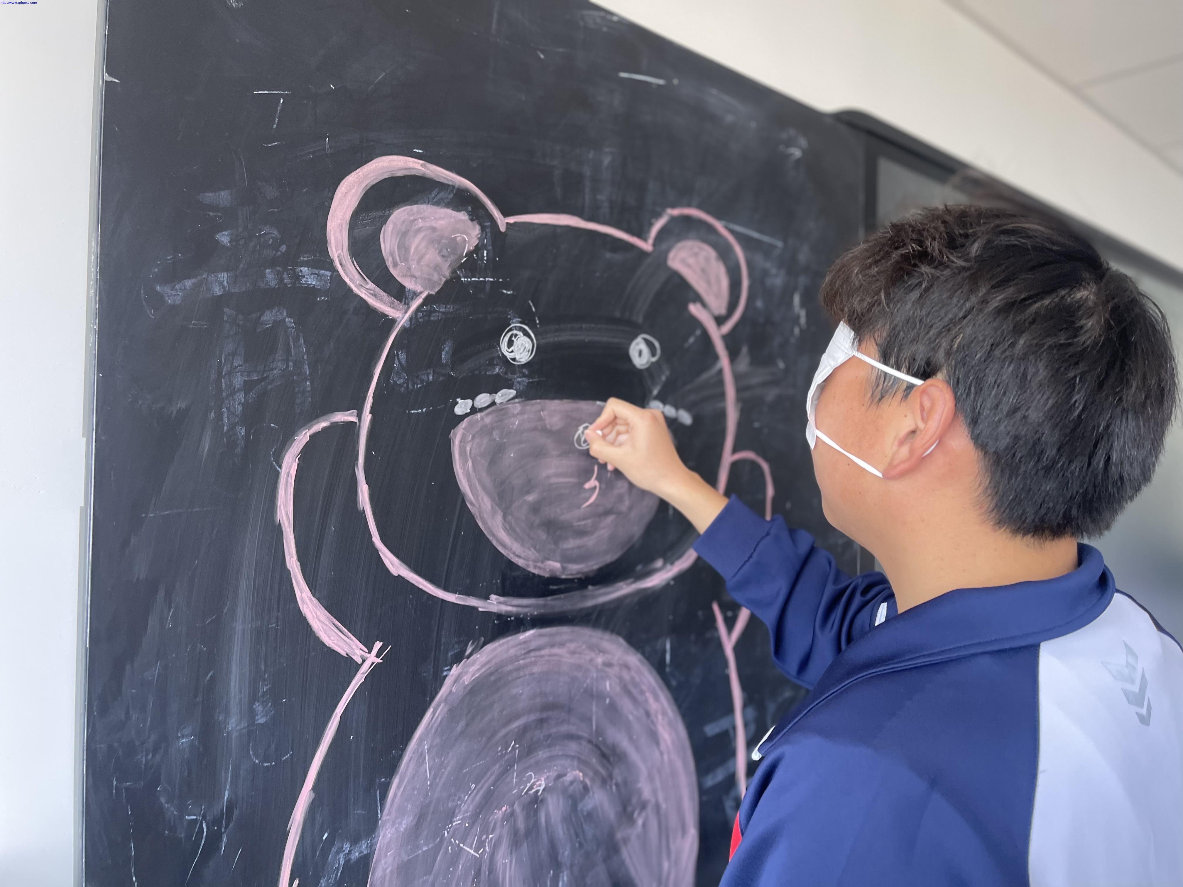 活动现场,黑板上的卡通人像早早“等待”着鼻子的点缀。参与者蒙住双眼,在同伴的指挥声中手持粉笔摸索着前进。“往左一点!”“再高点!”指令此起彼伏,有的同学方向感错乱,将鼻子画在了耳朵上上,引得哄堂大笑;有的凭借默契精准定位,收获阵阵掌声。欢笑声中,大家暂时放下书本,全身心投入游戏,在协作与挑战中感受着轻松的氛围。