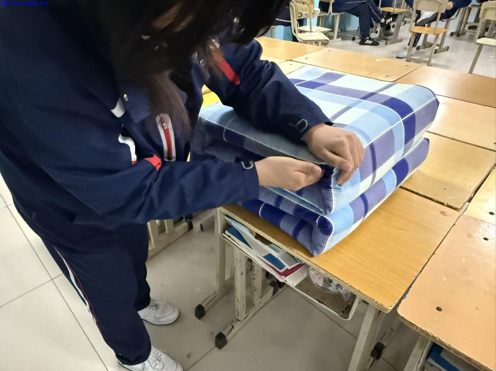 最终,经过评委对平整度、线条感的细致打分,多组选手凭借利落的手法与标准的“被型”脱颖而出,捧起了专属奖状。而那些整齐码放在课桌上的“豆腐块”,不仅是比赛的成果,更是同学们用细节书写的生活仪式感。