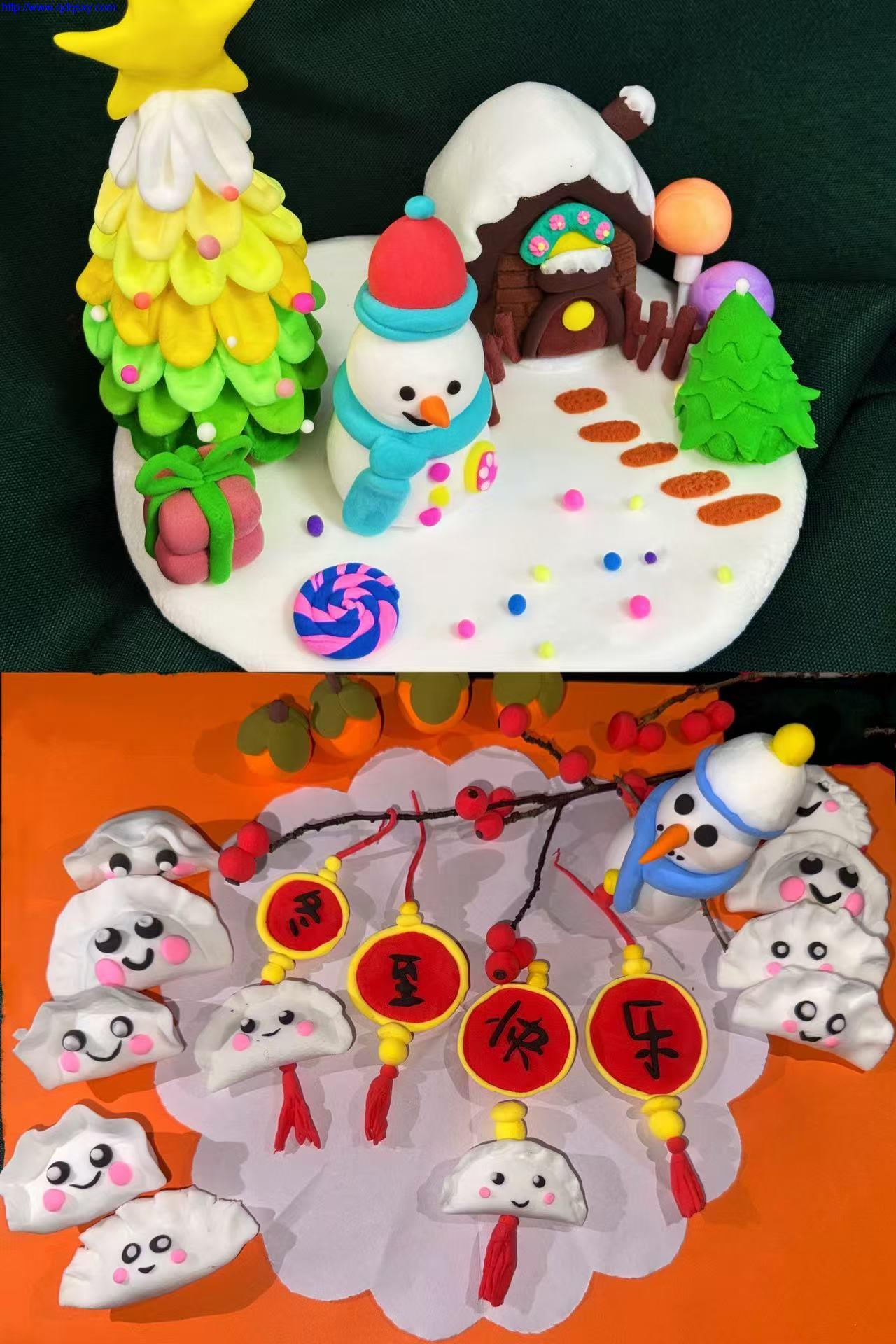 活动中,同学们以超轻黏土为材料,发挥创意与想象,围绕冬至元素精心创作。一只只憨态可掬的黏土饺子被赋予灵动的表情,圆圆的脸蛋、粉扑扑的腮红,瞬间让传统冬至美食变得鲜活可爱;红彤彤的灯笼挂件上,“冬至快乐”的字样格外醒目,搭配着小雪人、红果枝等装饰,每一处细节都饱含着对冬至的美好期许。还有同学别出心裁地制作出冬日雪景主题作品,圣诞树、小雪人、小木屋相映成趣,为冬至增添了别样的浪漫。