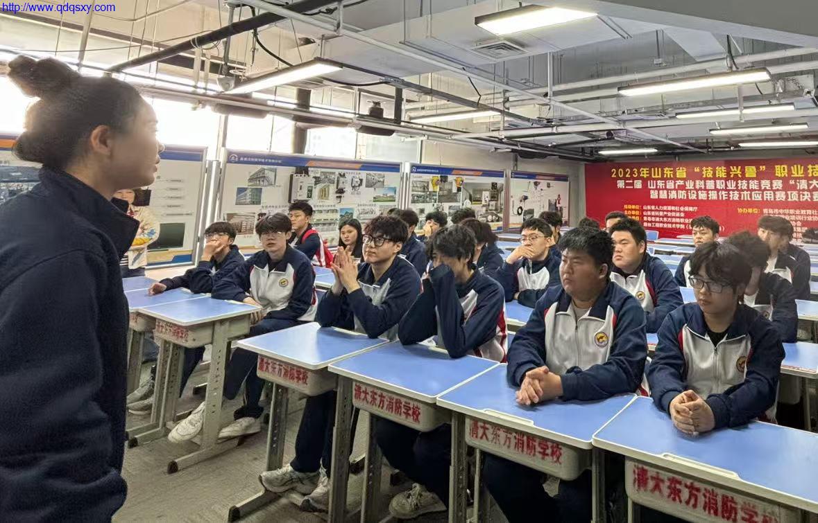 近日,青岛求实职业技术学院建筑工程学院组织2024级建筑消防技术专业学生走进青岛市清大东方消防培训学校,开展“沉浸式企业课堂”实践教学活动。此次活动以校企深度合作为纽带,打破理论与实践的壁垒,为学生们的职业发展之路筑牢根基。