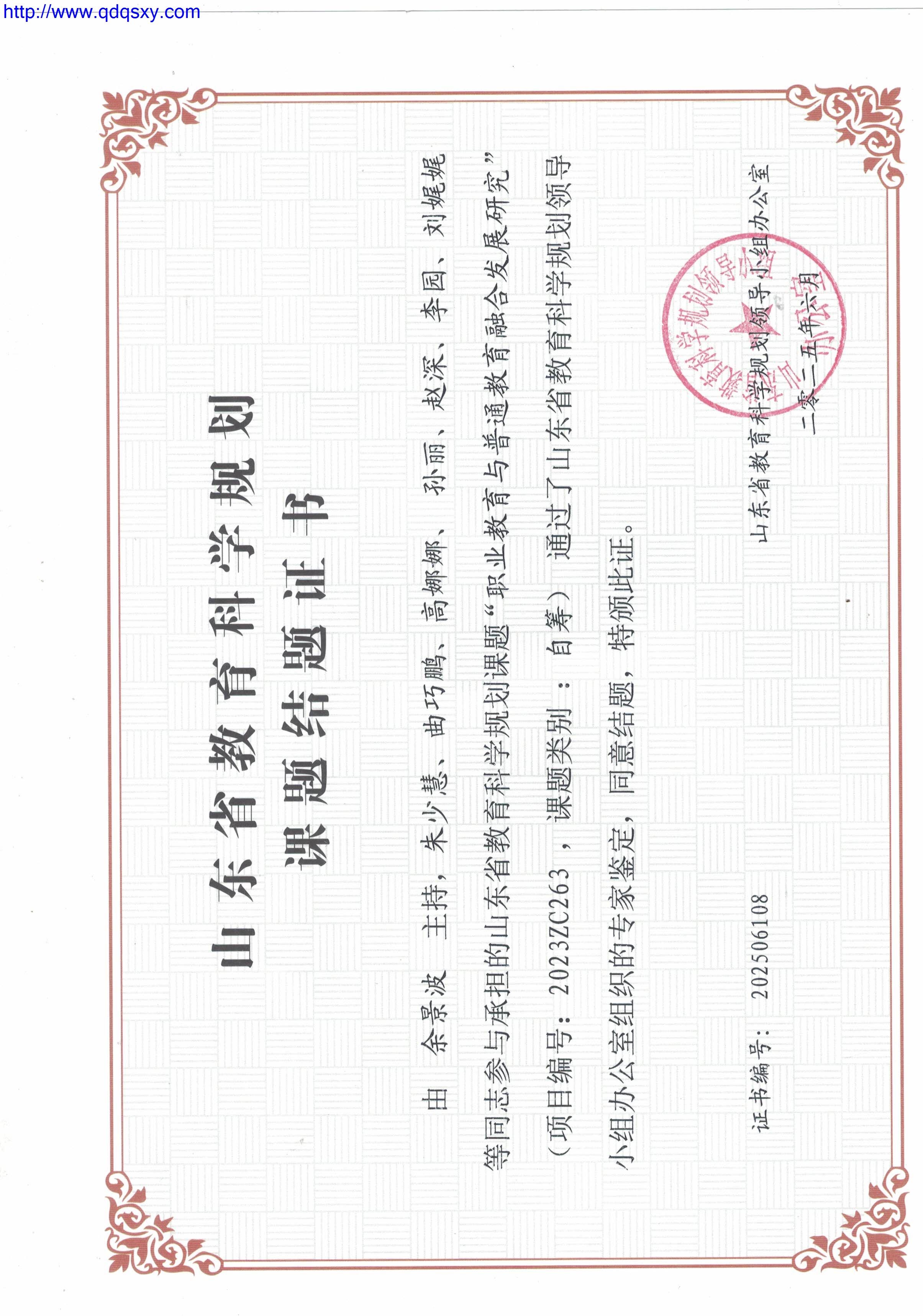 近日,山东省教育科学规划领导小组办公室公布了山东省教育科学规划课题2025年度第一批结项评审验收结果,根据《关于开展省教育科学规划课题结项工作的通知》(鲁教规办[2025]5号)和《山东省教育科学规划课题暂行管理办法》(鲁教规办[2015]4号)要求,经过材料申报验收、成果复制比检测、省教育科学规划领导小组办公室评审验收等环节,建筑工程学院承担规划课题《职业教育与普通教育融合发展研究》顺利结项。
