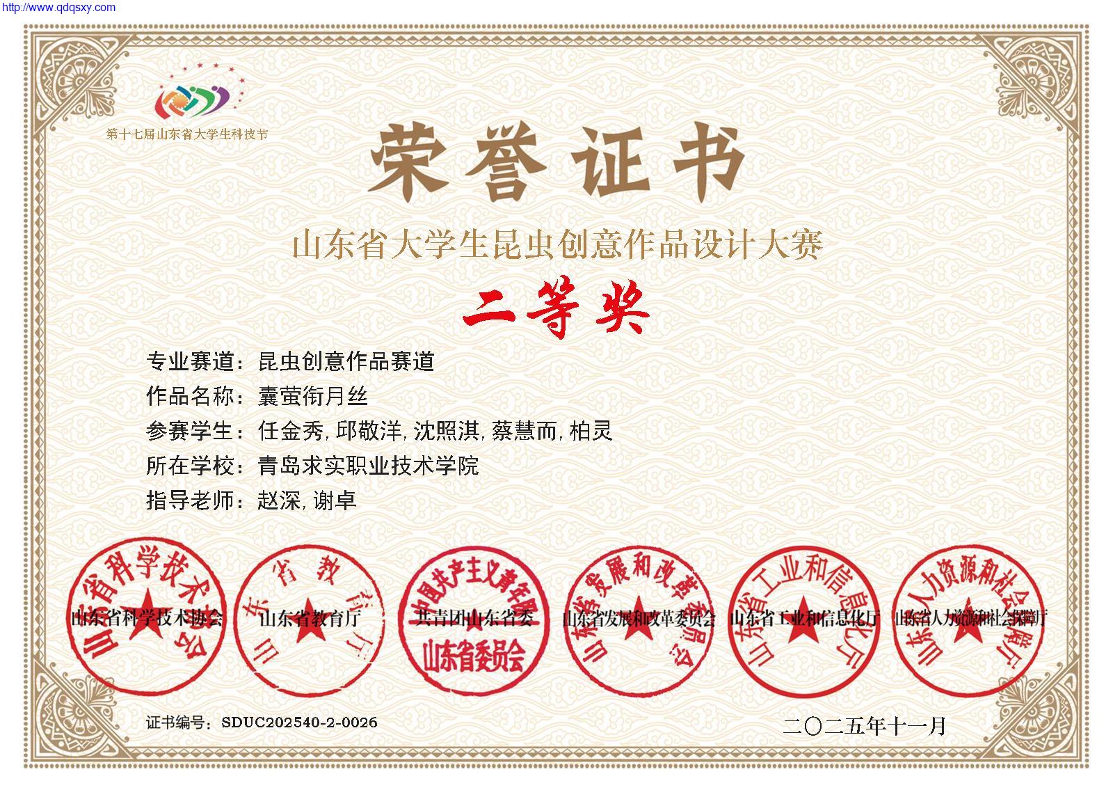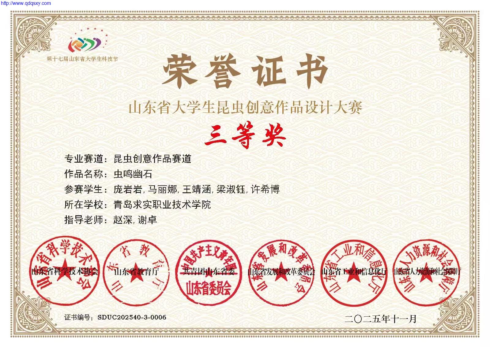 近日,2025年“曹达杯”第八届山东省大学生昆虫创意作品设计大赛落下帷幕。青岛求实职业技术学院建筑工程学院获得1个二等奖和2个三等奖。