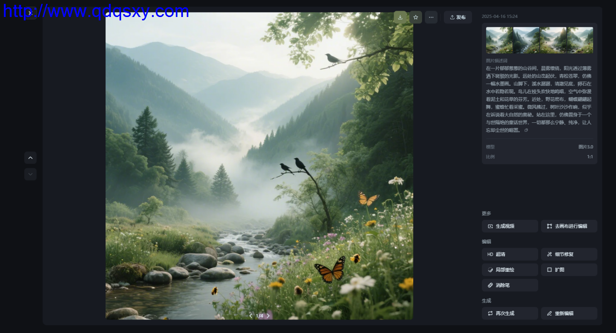 如果生成的结果不符合预期,可以根据具体情况调整提示词,再次进行生成。在这里还可以对图片进行一些操作如:细节修复。