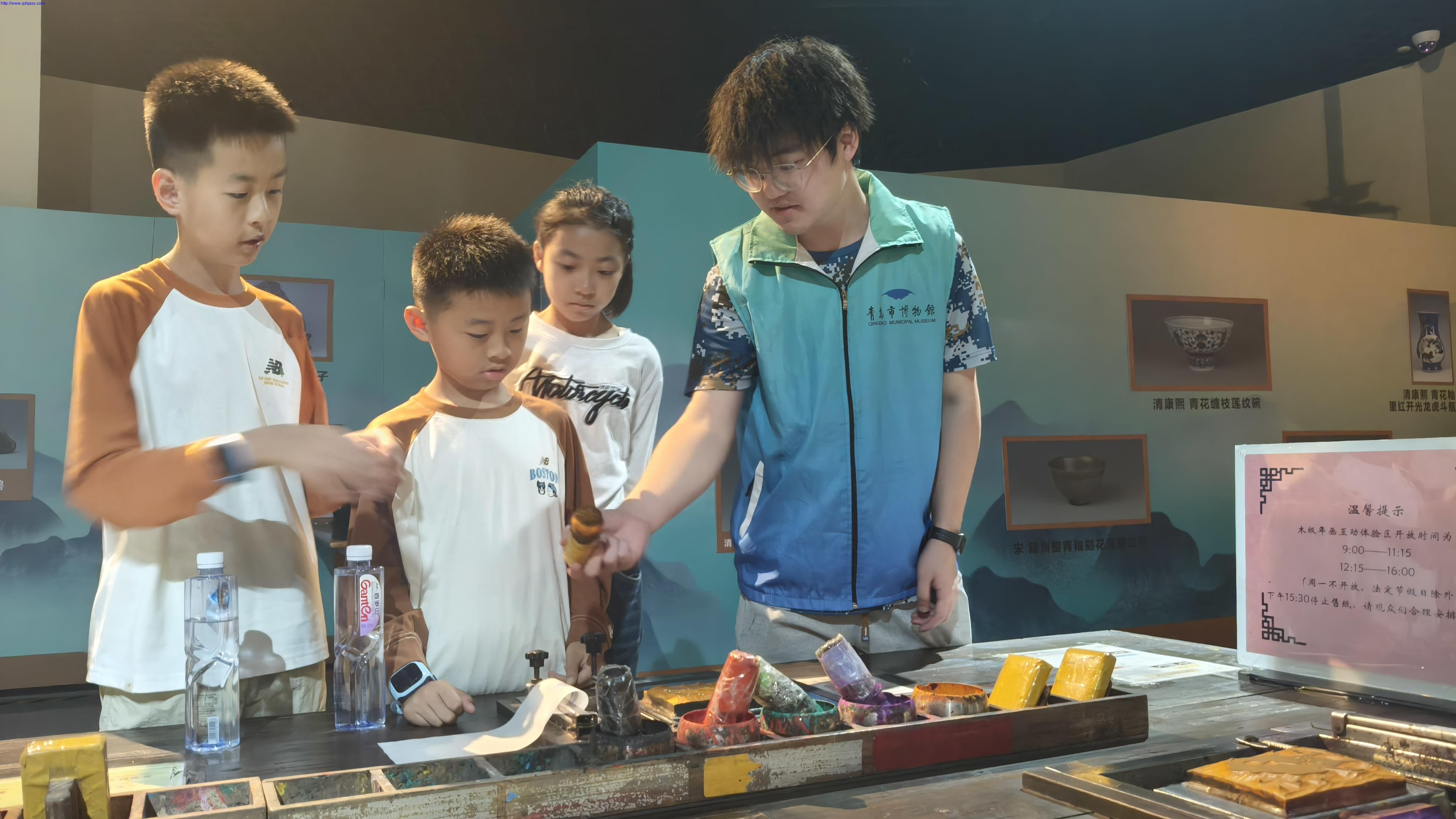 志愿服务中,旅游酒店管理学院学生志愿者们特别策划了系列公益活动,旨在通过互动体验的方式,增强公众的公益意识。在博物馆的互动区,组织了木版年画制作体验,吸引了众多家庭参与。孩子们在学生志愿者的指导下,亲手绘制出一幅幅色彩斑斓的年画,不仅体验了传统文化的魅力,更在心中种下了公益的种子。志愿者们通过这样的形式,让公益理念深入人心,展现了新时代青年的责任与担当。