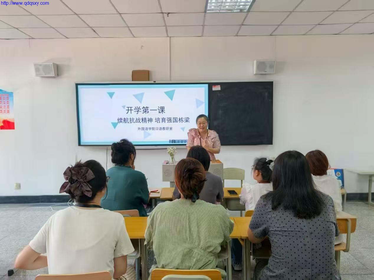 为深入贯彻落实立德树人根本任务,充分发挥“开学第一课”的价值引领作用,结合新时代育人要求与时代背景,外国语学院日语教研组以“续航抗战精神,培育祖国栋梁”为核心主题,于近期组织开展期初教研活动。外国语学院院长栾新静、副院长衣澄澄出席活动,与日语教研组全体教师共同围绕“抗战精神的时代内涵挖掘”“思政元素与教学实践融合路径”展开深度研讨,旨在引导学生铭记历史脉络、缅怀革命先烈、珍爱和平生活、勇担未来使命,进一步激发爱国热情与奋斗精神。