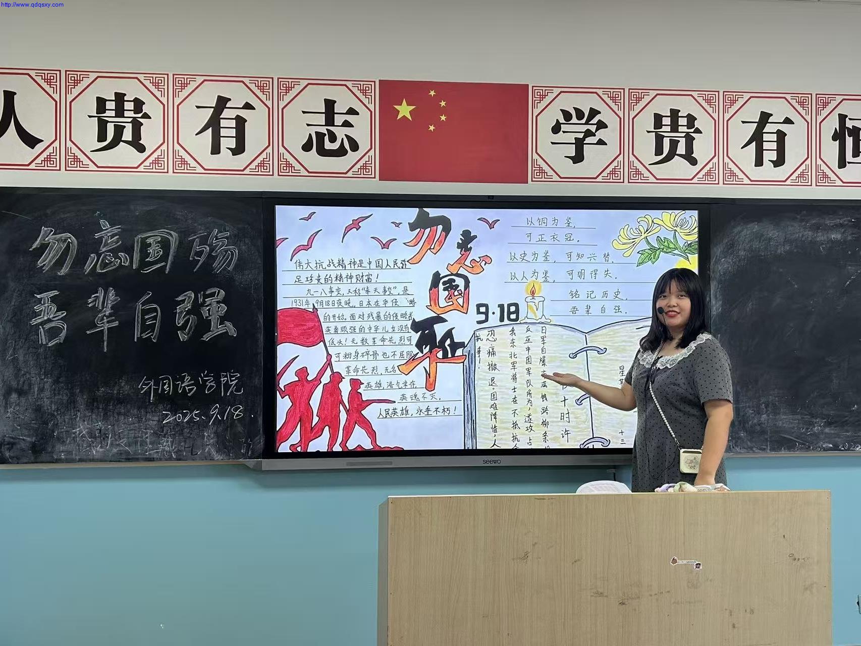 为铭记历史、缅怀先烈,进一步弘扬伟大的爱国主义精神,外国语学院在“九一八事变”纪念日到来之际,开展了918爱国主义教育活动。此次活动紧紧围绕爱国主义教育主线,通过专题讲座、集体学习、沉浸式体验等多种形式,引导师生深刻理解九一八事变在中华民族历史中的重要意义,激励全体师生铭记国耻、珍惜和平、砥砺奋进。