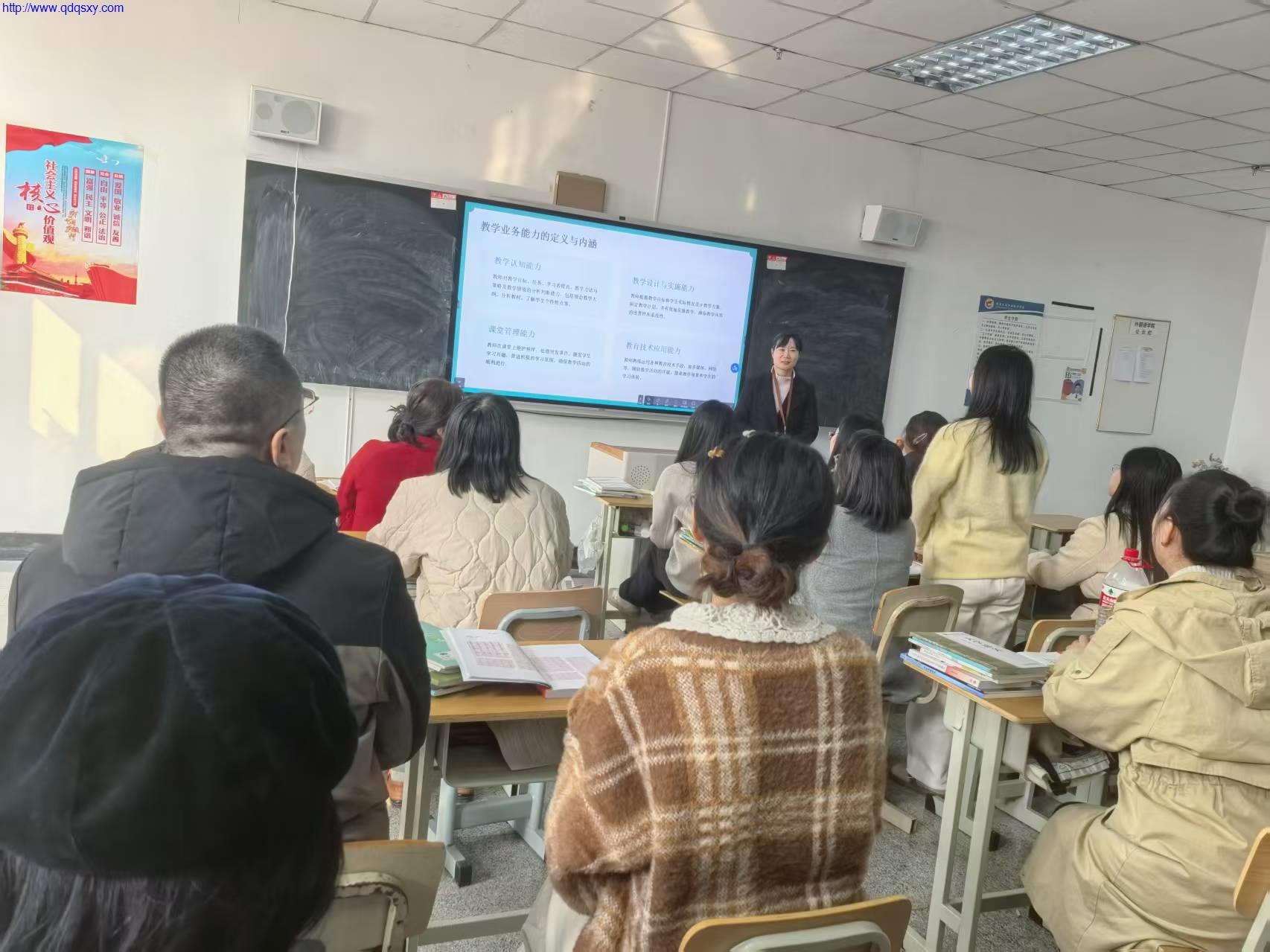 活动中,与外国语学院老师们分享了教学业务能力的定义与内涵、教学业务能力的重要性、教学业务能力的发展趋势、教学业务能力提升路径、教学业务能力提升案例等,通过案例分析、经验共享、互动交流,引导老师们深刻认识到教学业务能力的提升,非一朝一夕之功,它是一场持续的、需要躬身实践的探索。唯有紧跟时代步伐,贴近学生需求,服务专业发展,不断精进技艺,将理论与实践紧密结合,方能在三尺讲台上赢得主动。