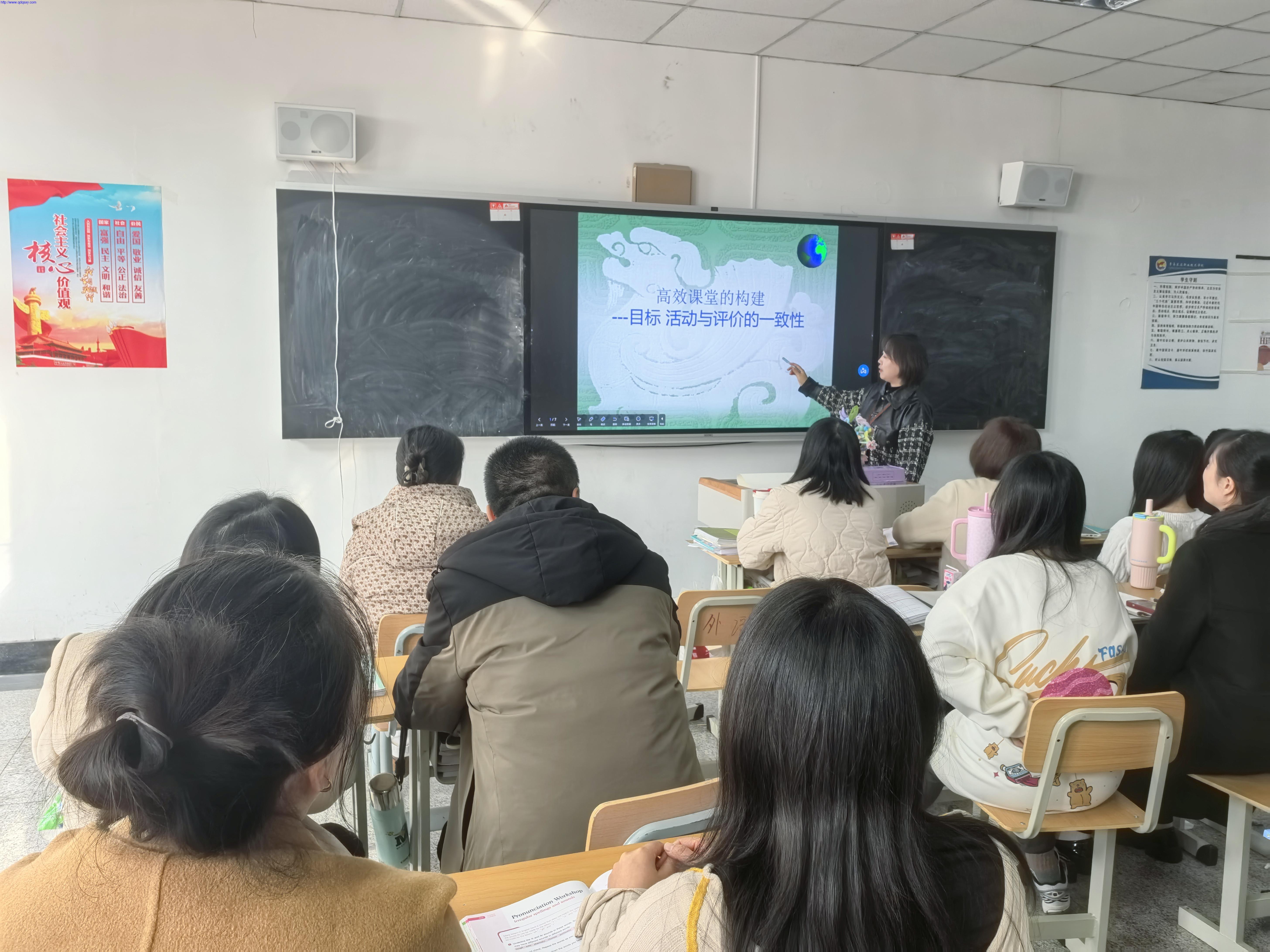 为进一步深化课堂教学改革,提升任课教师课堂教学效率,促进教学质量内涵式发展,近日,外国语学院冯丽丽老师以“高效课堂的构建——目标、活动与评价的一致性”为主题,为全体任课教师开展了一场专题培训。