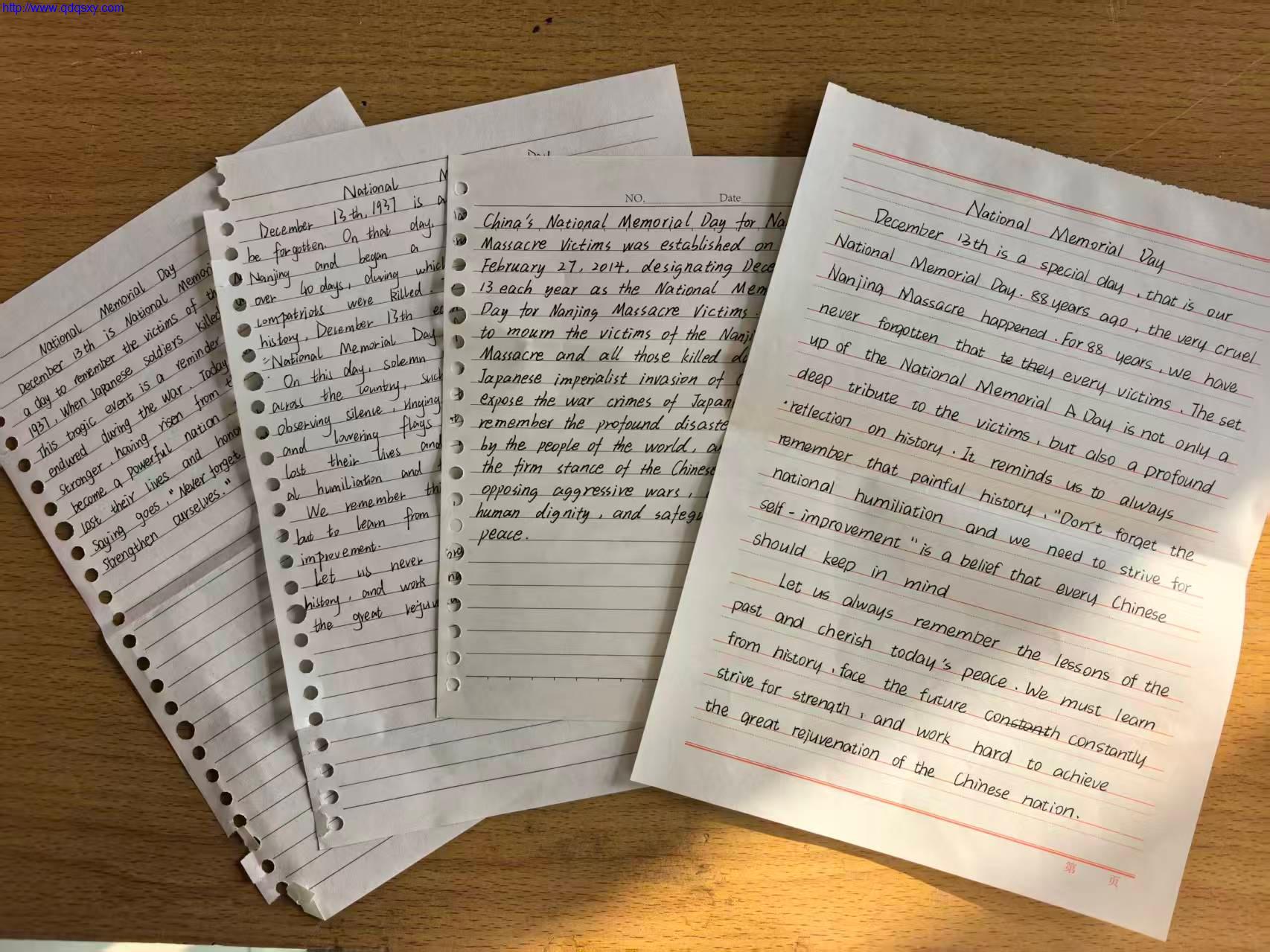 南京大屠杀死难者国家公祭日(12月13日)即将到来之际,外国语学院教师号召同学铭记历史砥砺前行,在课堂组织了“用英语讲中国故事—国家公祭日”的主题演讲活动,将语言学习和历史传承结合,鼓励同学们用英语向家人和外国友人介绍国家公祭日,让世界了解真正的中国。当高校英语课堂的黑板写上“National Memorial Day”,当知识点与民族记忆相遇,语言不再只是语法与词汇的组合,更成为传递历史真相、凝聚和平力量的重要载体。在英语教学中融入国家公祭日主题,既是跨文化传播的生动实践,更是培养青年学子家国情怀的深刻教育。作为肩负时代使命的高校学子,当以英语为桥,让这段刻骨铭心的历史跨越语言边界,让和平之声传向更广阔的世界。