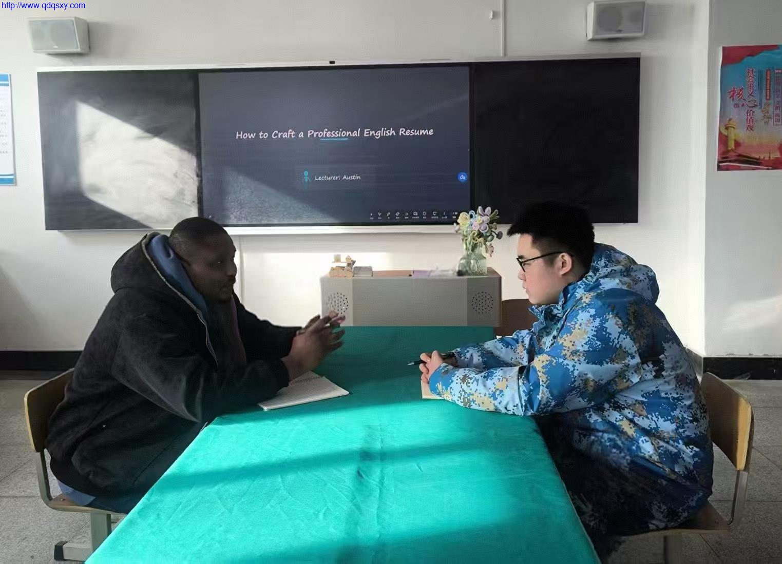 立足国际化人才培养定位,聚焦学生就业核心需求,外国语学院特邀外教Austin开展英文简历制作与模拟面试专场活动。本次活动精准对接商务英语专业学生外企求职、海外实习、跨境发展的多元需求,打破传统语言教学局限,把职场实用技能融入人才培养全过程,助力学生将语言优势转化为核心就业竞争力,现场同学们参与热情高涨,全程专注聆听、积极互动,收获满满。