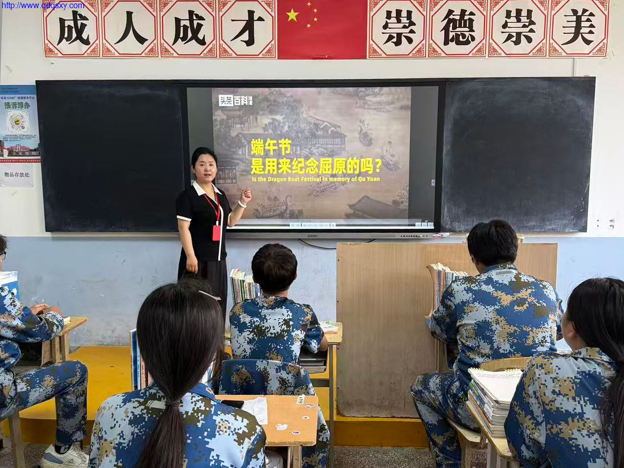 知识问答题目,涵盖了端午节起源、传统习俗(包粽子、赛龙舟、挂艾草)、诗词文化等多元领域 “端午节最初是源于对哪类自然天象的崇拜” 的学术探讨,也有 “屈原投江的具体河流名称” 的历史考究;传统习俗类题目贴近生活,从 “包粽子时糯米浸泡多久口感最佳” 的实用技巧,到 “赛龙舟船头装饰龙头的寓意” 的文化解读,再到 “挂艾草选择何种时间最具民俗意义” 的趣味问答,让学生在答题中感受端午烟火气;诗词文化类题目则带学生穿越千年,如 “请说出‘端午临中夏,时清日复长’的作者”“列举三首含‘端午’意象的古诗词”,将文学底蕴与节日内涵巧妙融合。学生们踊跃抢答,现场气氛热烈,在思维碰撞中加深了对端午文化的认知与热爱。