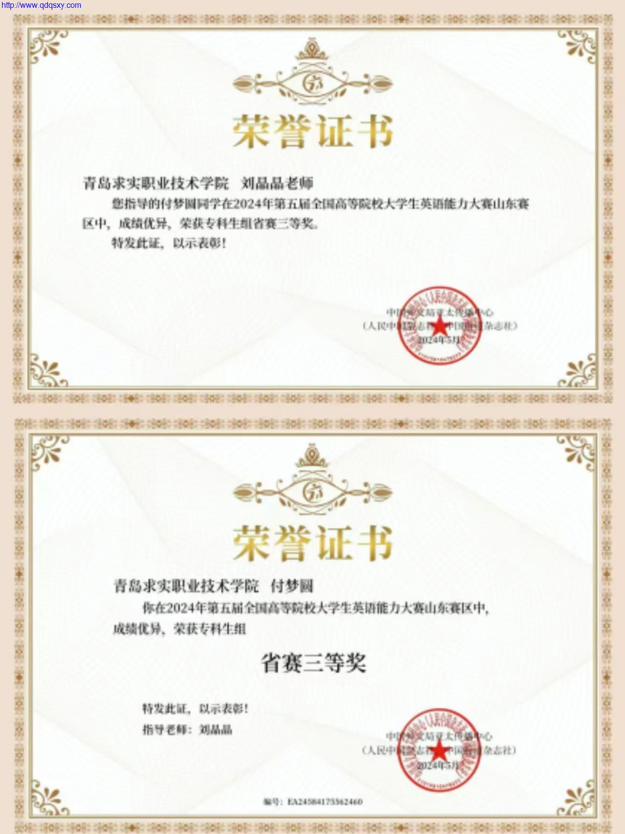 一项赛事获省级三等奖5月23日,第五届全国高等院校英语能力大赛山东赛区结果公布,青岛求实职业技术学院23级婴幼儿托育服务与管理专业学生付梦圆获得山东赛区专科组省赛三等奖。影视学院副院长刘晶晶获评优秀指导教师称号。影视学院十分重视技能大赛,坚持以赛促教,以赛促学,以赛促建,以赛促融,推动教学与比赛融合,检验教学情况。让学生比赛中提升英语水平,激发学生学习英语的热情。