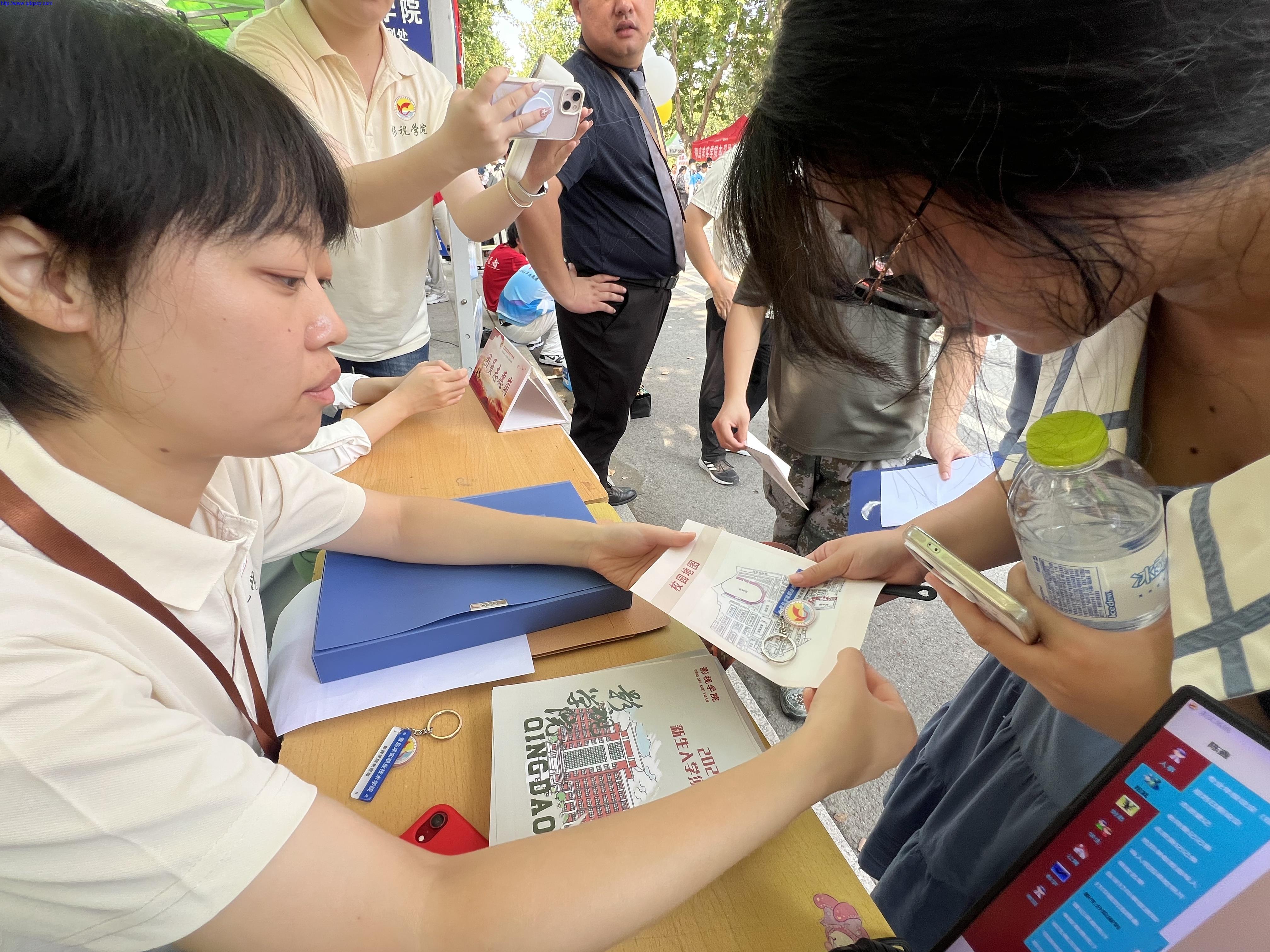暖心迎新,细节之处见真情。迎新期间,影视学院精心筹备,多项暖心举措成为亮点。分院不仅为每位报到新生准备了带有学校logo的定制钥匙扣,作为一份专属纪念,更组织辅导员和志愿者身穿统一的影视学院专属服装,亮眼又亲切,成为校园里一道流动的风景线。志愿者们热情引导、耐心解答,搬运行李、办理手续,全程陪伴,让新生和家长感受到“家”的温暖。