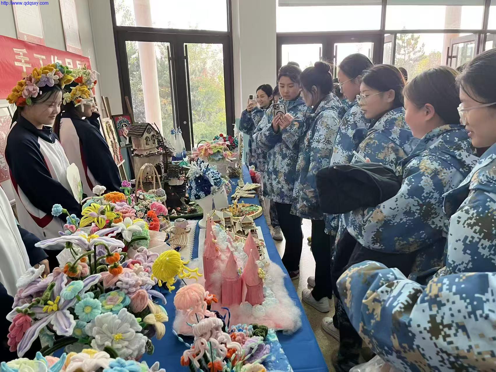走进展览现场,仿佛进入了一个五彩斑斓的创意世界。一件件手工作品琳琅满目,令人目不暇接。有以绚丽色彩和细腻工艺打造的花卉,花朵形态各异,色彩搭配和谐,仿佛散发着阵阵芬芳;有传承中华传统文化的剪纸作品,一刀一刻间尽显民俗风情与文化底蕴;还有利用塑料瓶、纸箱等废旧物品制作的环保创意作品,变废为宝,体现了学生们对环保理念的深刻理解和创新实践。
