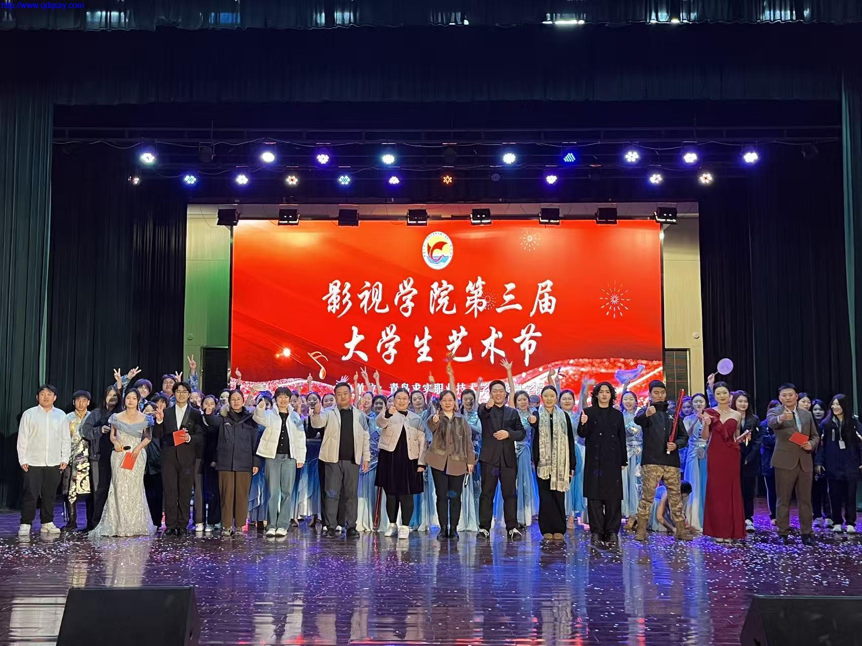 活动尾声,演职人员与教师代表共同登台合影留念,现场彩带纷飞,掌声经久不息。此次艺术节,不仅是一场精彩绝伦的演出,更是同学们专业实践与青春表达的广阔舞台。大学生科技文化艺术节作为影视学院教学成果的展示窗口,为学子们搭建以艺会友、绽放自我的优质平台。未来,学院将持续以艺术实践赋能人才培养,让青春在创作与展演中绽放更加绚烂的光彩。