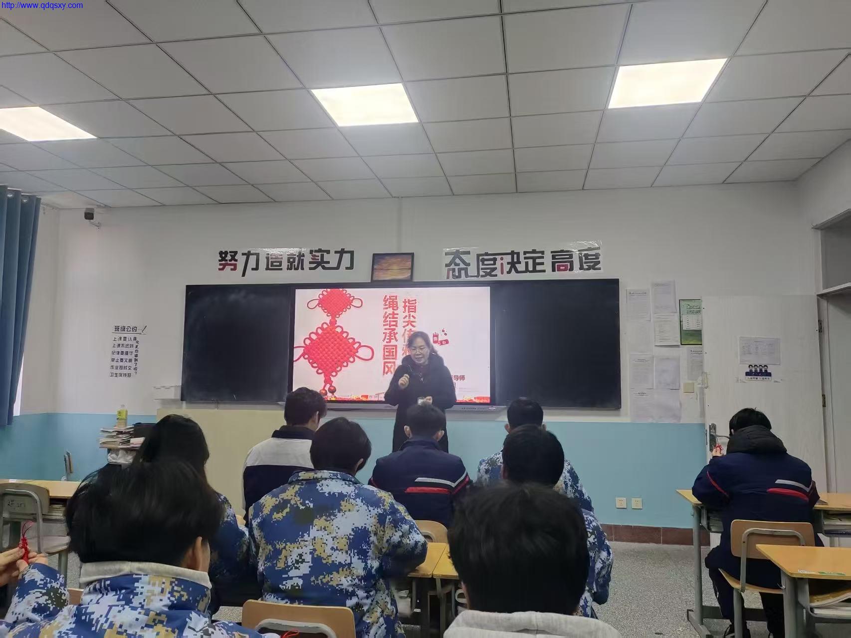 活动伊始,总督导师老师李宁通过图文与视频相结合的方式,为同学们介绍了中国结的历史渊源、文化寓意与常见结型。从“盘长结”的绵延不断,到“如意结”的吉祥顺遂,再到“同心结”的忠贞不渝,一个个绳结背后承载着中华民族对美好生活的向往与祝福。同学们在讲解中深刻感受到传统手工艺中蕴含的文化底蕴与精神力量。